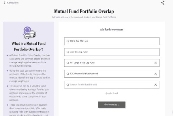 Don't let overlapping funds undermine your returns and diversification. Our Overlap Calculator gives you the insights to optimise your mutual fund portfolio. . Try it out and take your portfolio to the next level today!