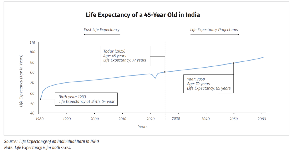 Gone are the days when retirement lasted just 10–15 years and you only had to plan for this short phase. With rising life expectancy, it can now stretch 30–40 years or more. The biggest threat here is longevity risk, the financial danger of outliving your savings because you live longer than expected.