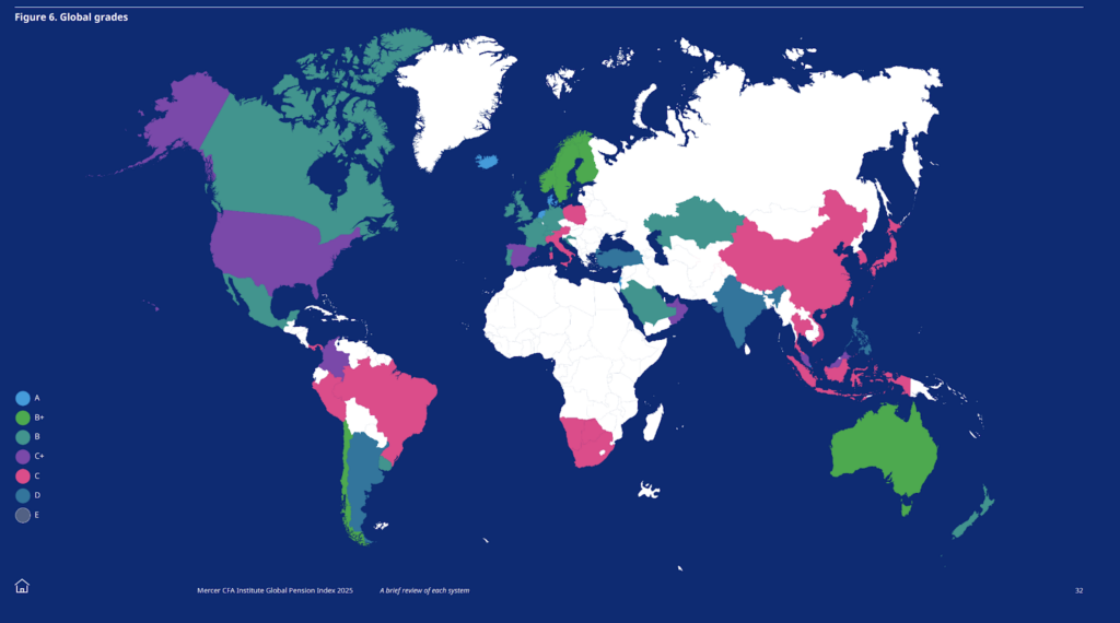 According to the Mercer CFA Institute Global Pension Index, India’s pension system is rated D.